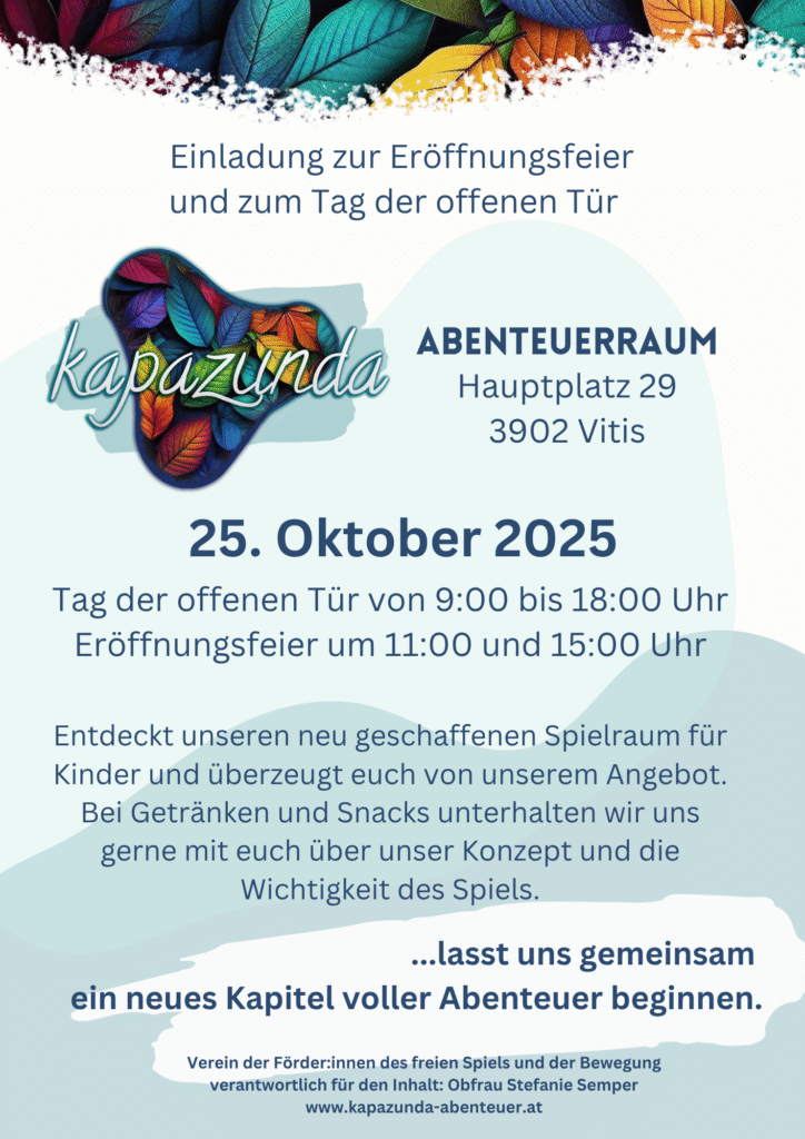 Als Eltern ist es uns wichtig, unsere Kinder auf ihrem Weg zu begleiten, ihnen Angebote zu ermöglichen, die ihren Interessen entsprechen, sie zu fördern und sie auf das Leben vorzubereiten. Oft führt dieses Bestreben aber dazu, dass der Alltag durchgetaktet und die Freizeit mit geführten Aktivitäten verplant ist. Neben all der Förderung bleibt allerdings in den meisten Fällen wenig Raum und Zeit für das spontane und freie Spiel.