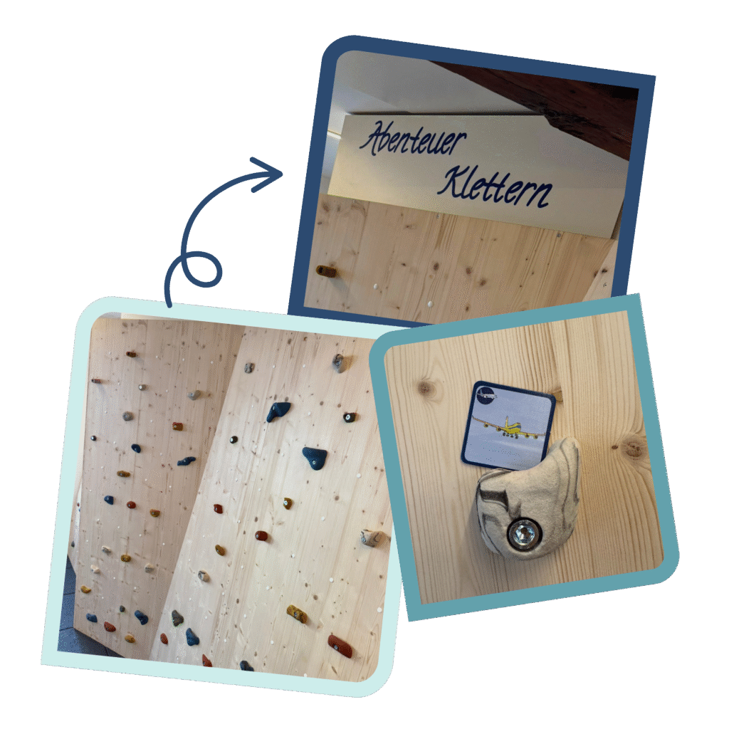 Ein weiteres Highlight ist die Kletterwand zum Bouldern, die durch verschiedene Abschnitte und Neigungen für jedes Können ein Abenteuer bereit hält.