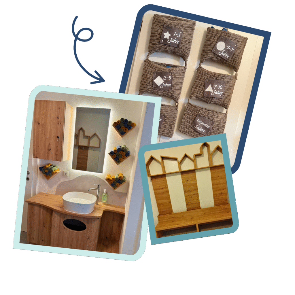 Das Abenteuer beginnt in unserer Garderobe. Unsere Einrichtungsgegenstände sind für Kinder gemacht und daher höhenangepasst. Außerdem stehen rutschfeste Socken in den verschiedenen Größen zur Verfügung, um das Abenteuer sicherer zu machen.