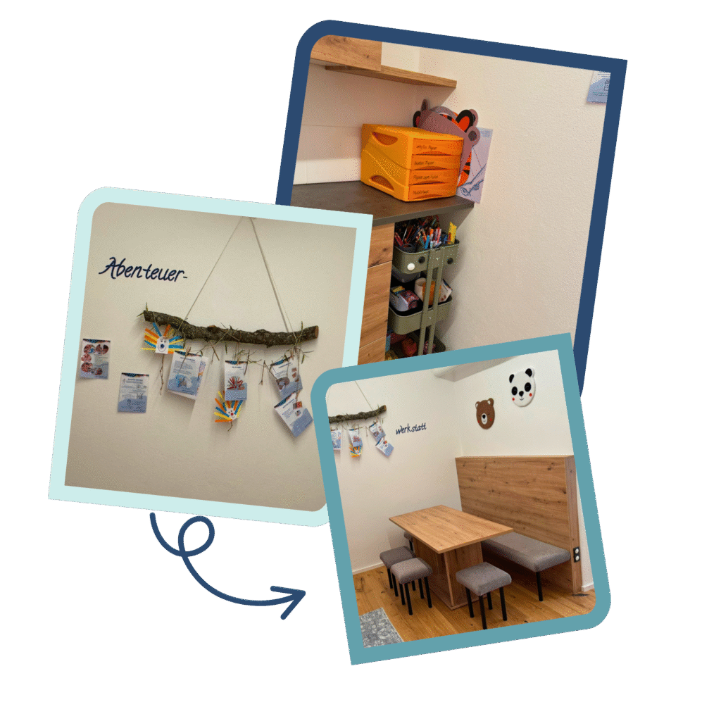 In der Teeküche befindet sich einerseits die Abenteuerwerkstatt, die zum Basteln, Forschen und Experimentieren einlädt. Dabei kann man die von uns bereitgestellten Bastel- und Forscherideen nutzen oder ganz nach seinen eigenen Ideen aktiv werden.